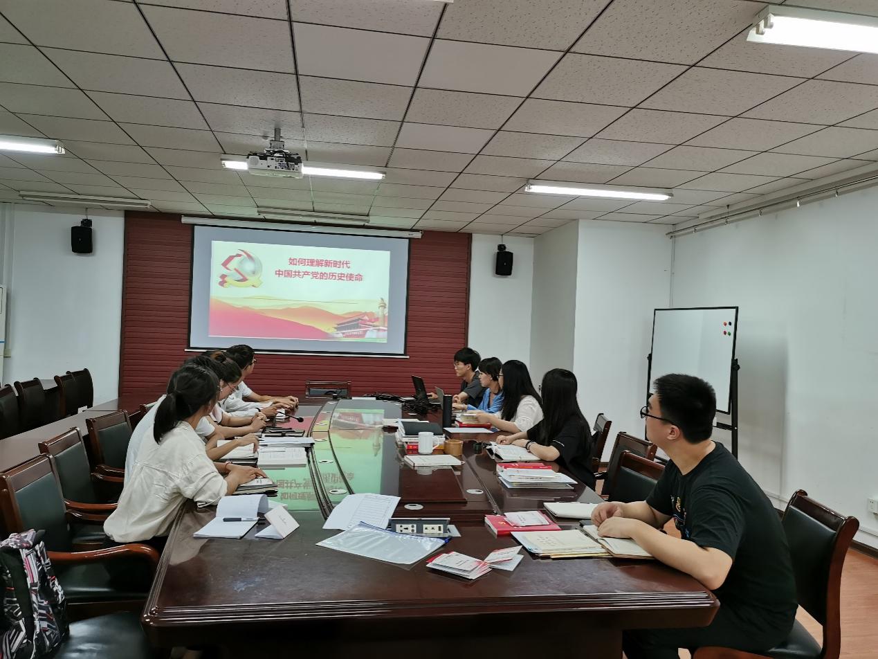 会议开始后,首先全员一起观赏了《国家记忆》,展现党史、国史、军史中的重大历史事件、各领域重大工程建设,记录讲述党的奋斗史、创业史、中国特色社会主义探索史、改革开放进程史。随后我们一起去了解了共产党在新时代的历史使命,就是我们党需要统揽伟大斗争、伟大工程、伟大事业、伟大梦想,汇报中大家共同学习着新时代中国共产党的历史使命,就是实现两个一百年奋斗目标,实现中华民族伟大复兴的中国梦,推动构建人类命运共同体,深刻意识到我们共产党人,要做中国人民和世界人民的使者,不忘初心、牢记使命,为实现中华民族伟大复兴、为世界和平发展不懈奋斗。
