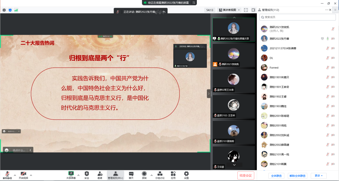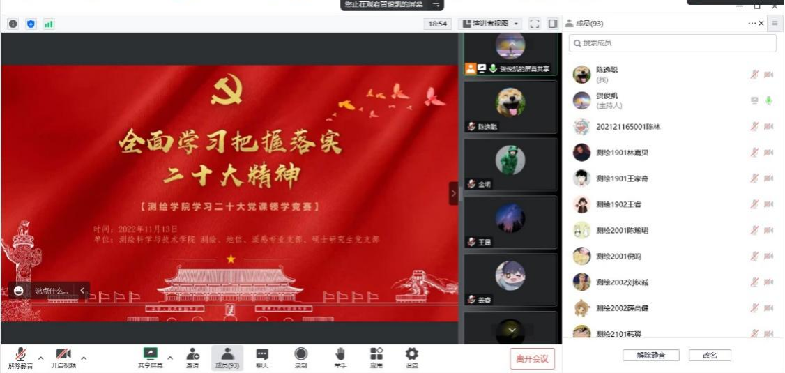 为全面深入学习贯彻党的二十大精神,11月13日晚,公司硕士研究生党支部与测绘、地信、遥感专业本科党支部联合组织微党课竞赛活动。全部员工党员参加,会议由贺俊凯同学主持。