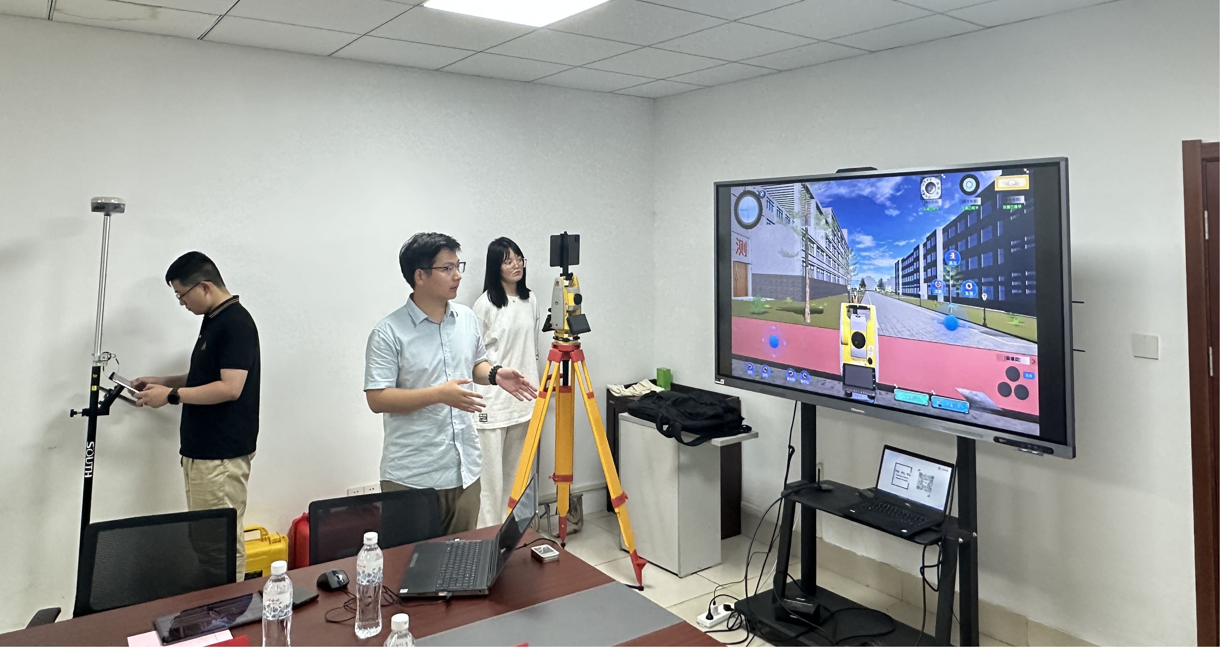 袁大伟总经理以“测绘地理信息+人才培养的南方实践”为题,介绍了测绘地理信息元宇宙技术的概念及南方测绘集团在虚拟仿真教学中的探索创新案例。教育事业部经理刘佳昊及团队成员现场演示了“元宇宙测绘技术应用”案例。双方还就测绘遥感专业虚拟仿真教学、产教融合等内容进行了深入讨论交流。