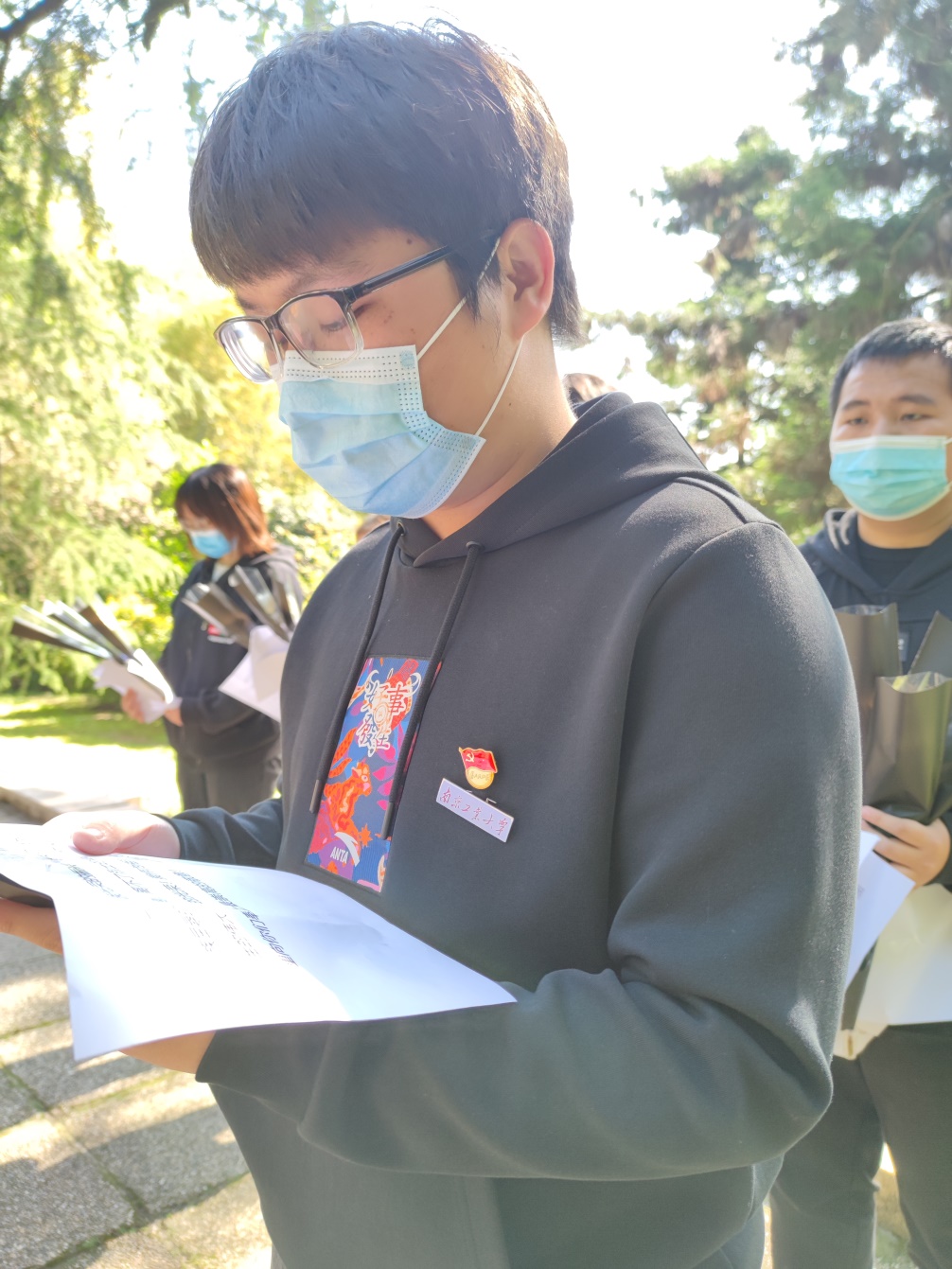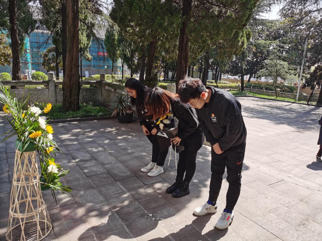 早上,同学们有序出发,到达陵园后,排列队伍,整理着装,整顿心情。活动开始,领队先宣读了先烈事迹和收集到的各地寄语。随后同学们将鲜花敬献到烈士墓前,肃立默哀3分钟,表达对烈士的崇高敬意和深切悼念之情。