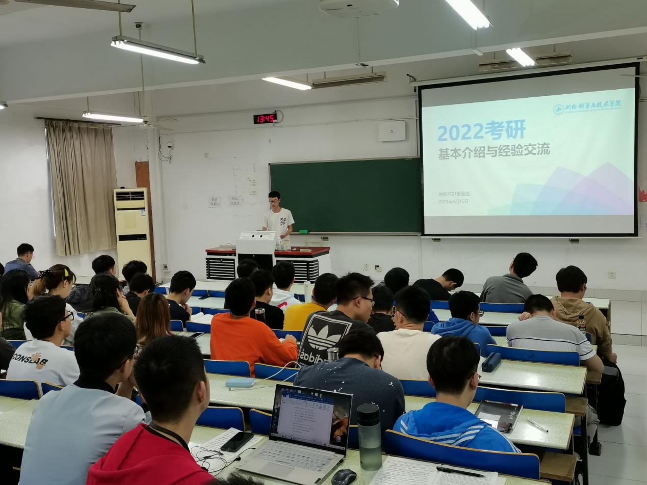 为帮助本科生明确考研目标,掌握考研的复习方法与技巧,公司于5月16日下午在仁智楼415举办考研经验交流分享会,2021年研究生入学考试中取得优异成绩的衡雪彪、杨天、陆宇翔、石凌峰等同学应邀为大家分享了他们的考研经验。团委副书记许琳老师和2017级辅导员万钰炜老师参加。