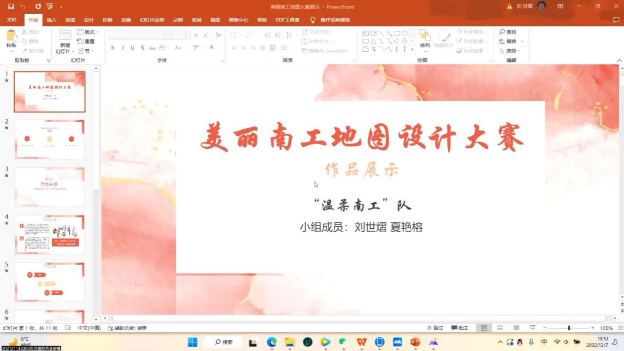 为丰富公司校园文化生活,展现校园风光,12月7日,太阳成集团122ccvip成功举办第九届“美丽南工地图设计大赛”作品线上展评会。本次大赛经过前期宣传、作品收集、最终展示三个阶段,共有来自海外教育公司、安全科学与工程公司、建筑公司、交通运输工程公司、电气工程与控制科学公司的11支队伍参与。公司宫金杞、黄祥老师,程思进同学参加展评会并担任评委。
