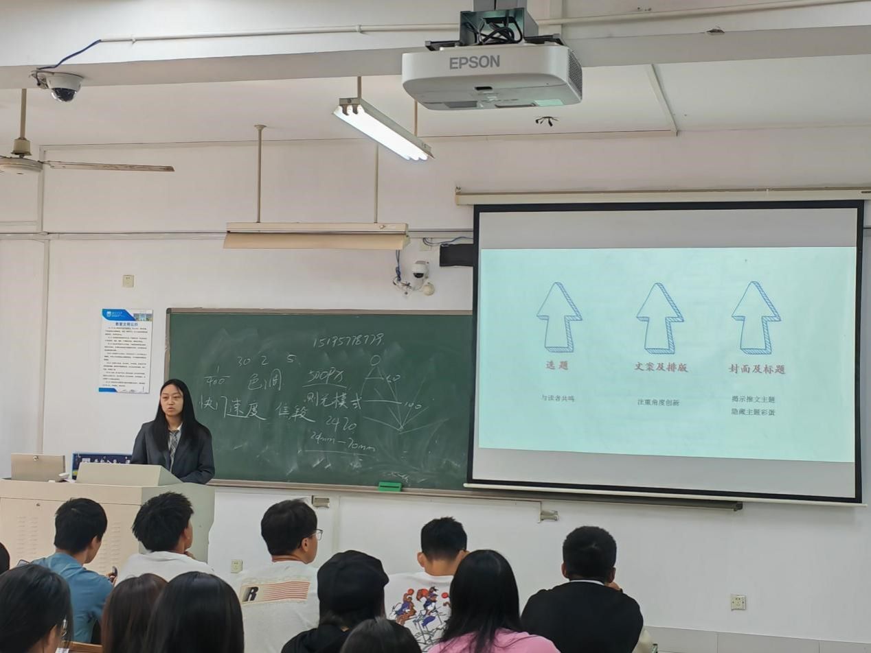 会议伊始,陈俣江同学就自身工作经验,讲解新闻照片的拍摄要求与摄影技巧,并向各位同学展示了以往活动中所拍摄的经典照片,他强调拍摄的照片要有新闻点,注意拍摄的角度等注意事项。接着,夏艳榕同学从新闻的要素以及体裁入手,深入阐释新闻稿的撰写方法,并结合往期活动讲解新闻稿各部分的注意要点、写作要求和注意事项。最后,包煜同学就关于公众号推文的规则及注意事项进行了详细的讲解。
