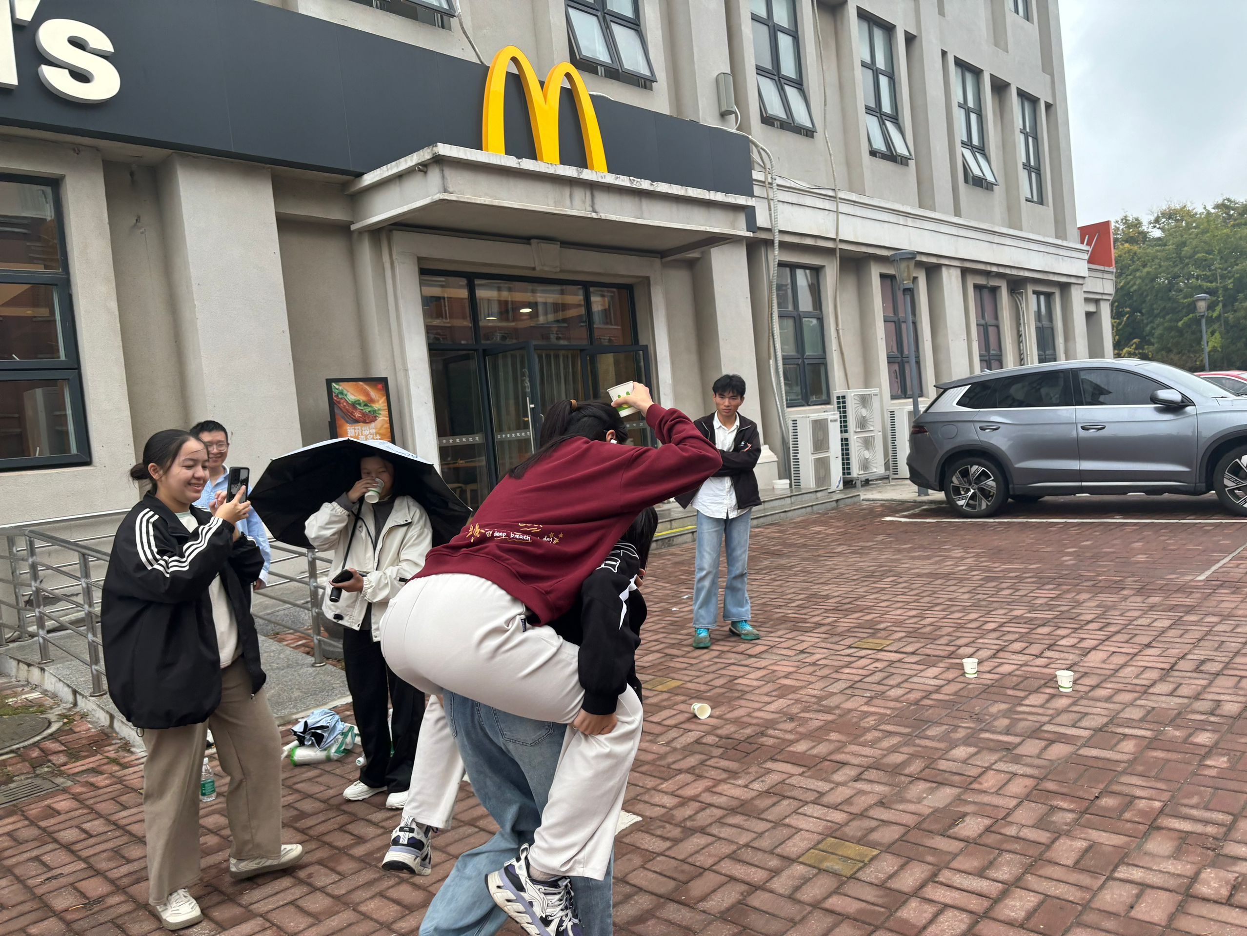 活动以公司标志性建筑天宝阁为起点,设置了包括垒球场、音乐台、时钧园等在内的9个充满校园特色的游戏点位。8支参赛队伍展现出了非凡的团队精神与默契,共同完成了沙包投桶、踩气球、背人顶水、耳机哼歌等小游戏。尽管天气微凉,但每位参赛者的热情却丝毫未减,现场气氛热烈非凡。