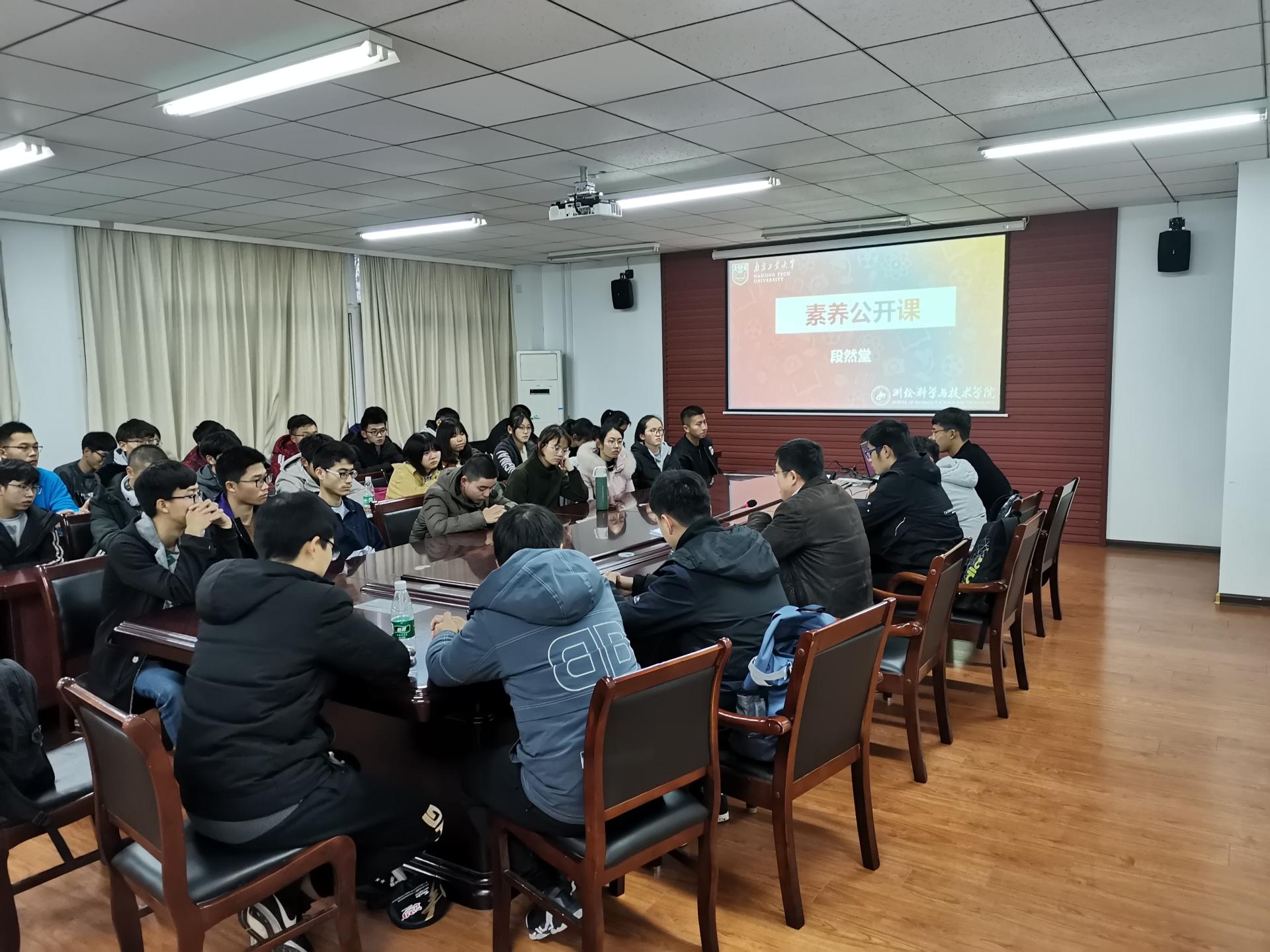 12月17日15:40,公司素养公开课在天工楼会议室开展,由段然堂书记主讲,公司2019级部分同学参加本次课程。