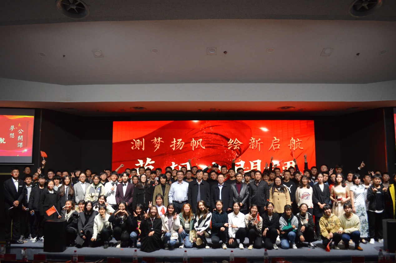 1126日晚630,公司2019“测梦扬帆,绘新起航梦想公开课在逸夫图书馆一楼报告厅拉开帷幕。出席本次活动的领导老师有公司党委书记段然堂、经理李明峰、副经理吉文来、院办、学办以及专业老师。