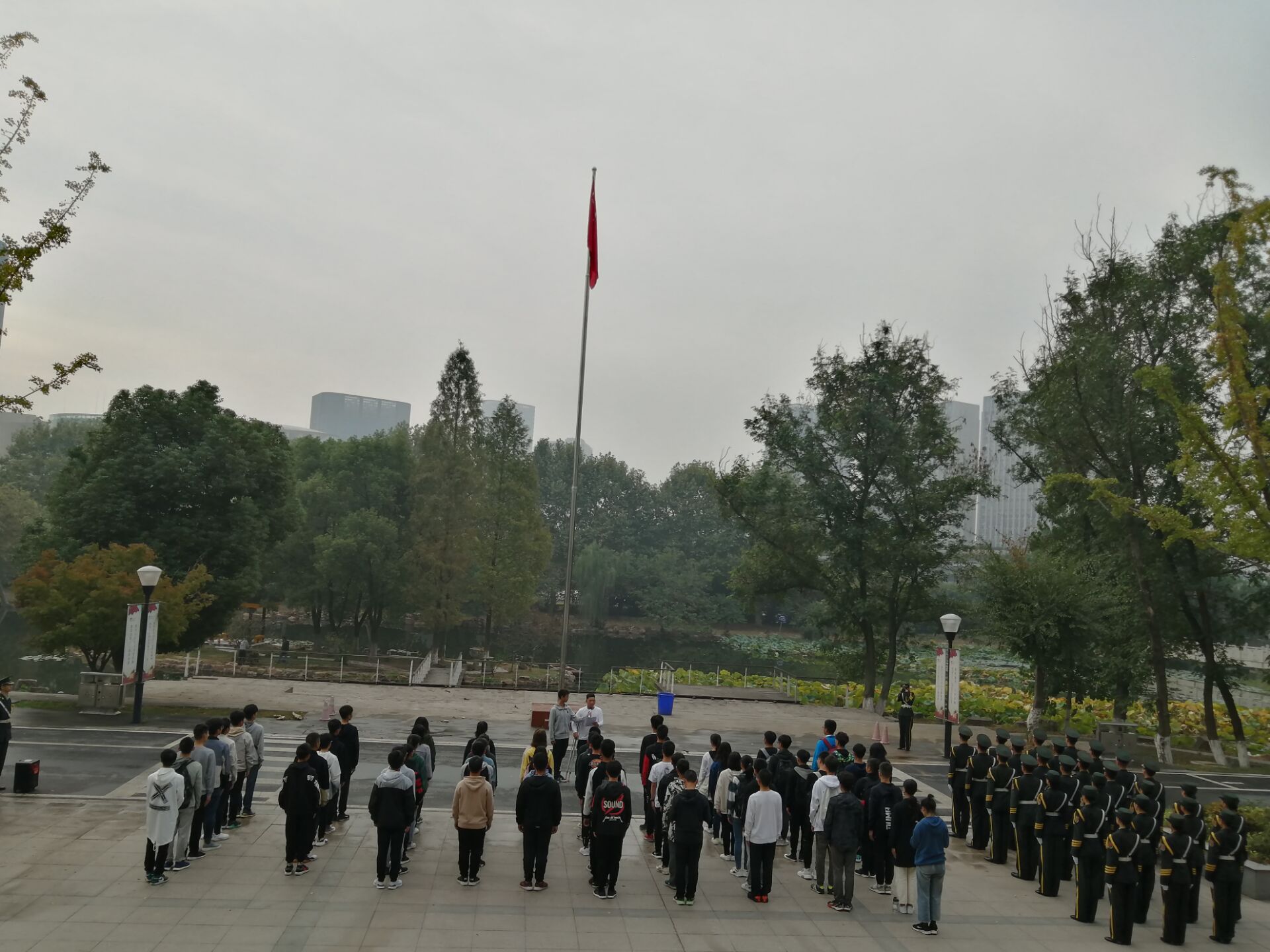 10月21日早7:00,公司“升旗进班级”活动在行政楼前广场举行,本次活动由团委副书记许琳带队,国旗护卫队成员与公司各班级同学参加。