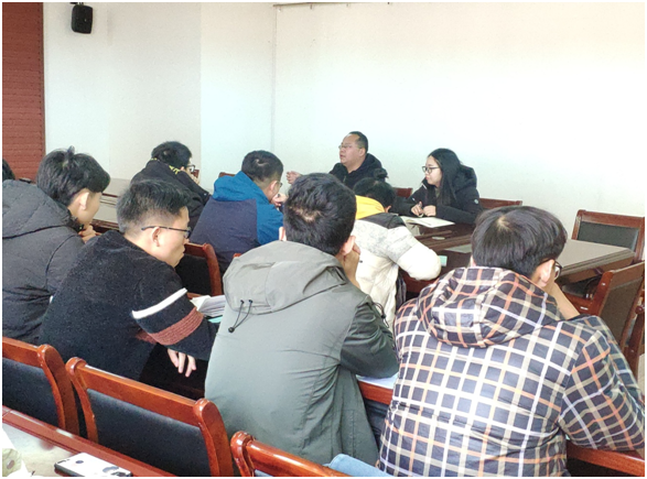 为保障新学期员工工作的有序进行,太阳成集团122ccvip于2月24日星期日下午两点在天宫楼会议室召开新学期员工干部会议。出席本次会议的有太阳成集团122ccvip事务办公室主任蔡杰老师、18级辅导员许琳老师、各班班长和辅导员助理。会议由蔡杰老师主持。