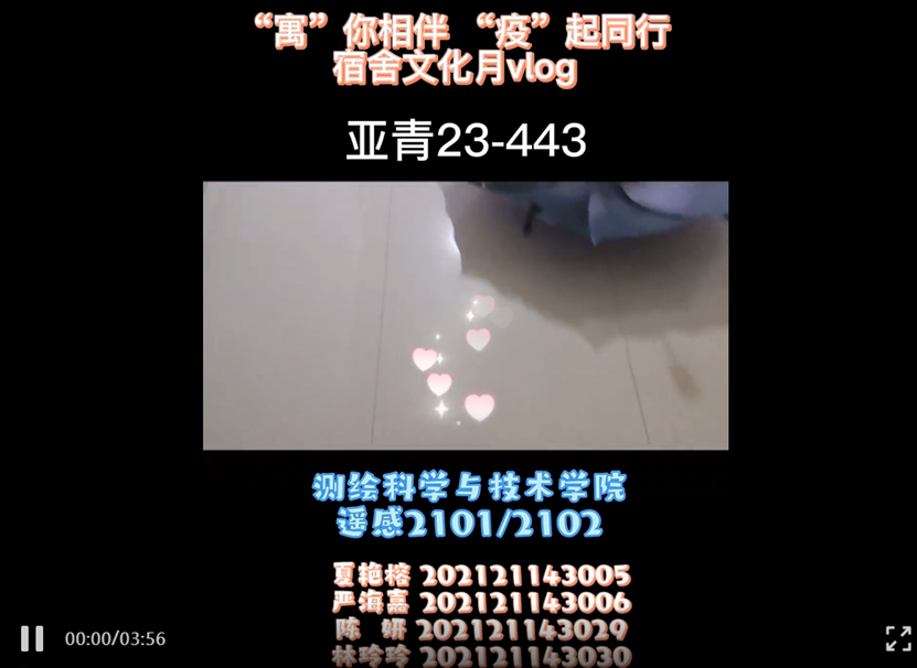 本次比赛,选手需要围绕“疫情期间的宿舍生活”主题进行创作投稿。比赛前期,为提高参赛选手个人技能,公司员工会新宣部组织进行了Pr、Ae软件应用培训,为参赛选手提供了一定的技术支持。比赛期间,选手们发散思维、认真思考,力求将自己生活中的点滴美好,通过Vlog创作传递给大家,给封校的老员工活增加美好。本次比赛由招募的评委团根据视频的流畅性、完整性等多个方面进行打分。最终,遥感2101班快乐加倍组荣获一等奖,地空2101班灵悟组以及遥感2101班汤臣一品组获得二等奖,三等奖得主为地空2101班女生宿舍组、测绘2102防疫大队组及测绘2101谁是狼人组。