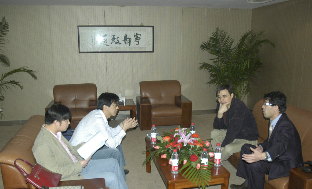 李明峰经理、徐敬海副经理与阮林军员工、徐建新员工交流