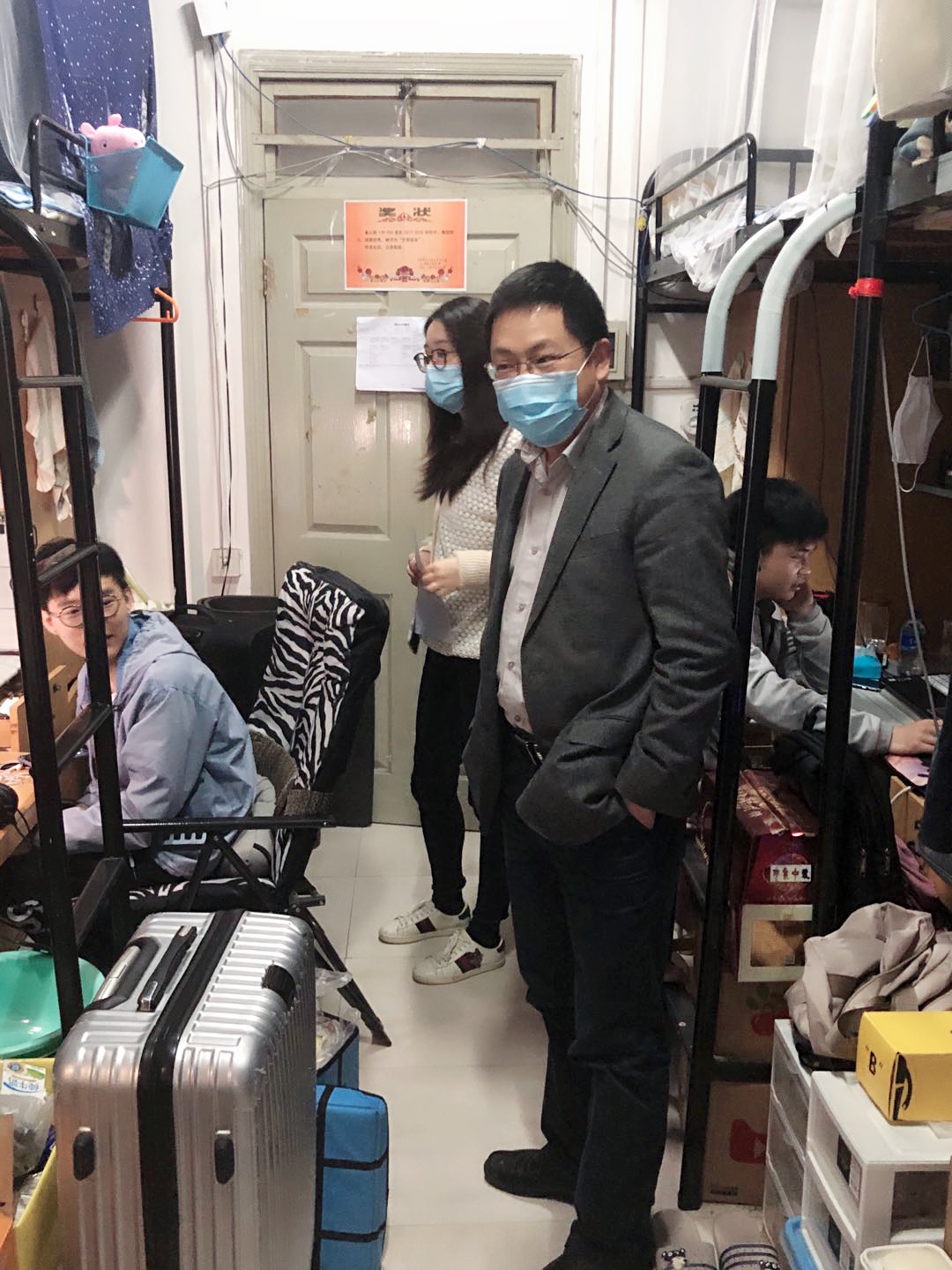 4月21日下午,公司党委书记段然堂、毕业班辅导员张甲田老师来到象山、檀香走访员工宿舍。