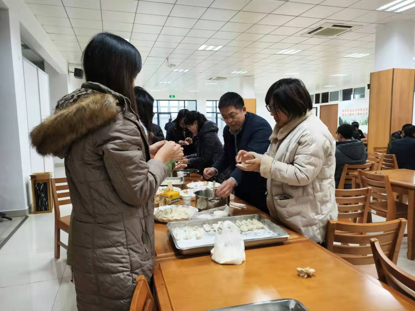 茶话会上,有的在掼蛋、有的在打乒乓球,还有的在包饺子。活动中,大家交流着工作、教育的趣事以及各自家乡迎春节的习俗等;包饺子的现场,大家看着形状各异的饺子,在比对中相互学习,不时爆发出阵阵笑声。新进和老教工们在围炉式的谈笑中,拉近了距离、增进了感情、融入了新的大家庭。