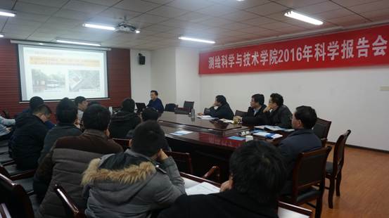 报告会上,公司9位教师借助图文并茂的PPT,围绕测绘工程、遥感应用、地理信息系统的最新研究成果,介绍了“测绘内外业一体化现状与思考”、“点云数据处理技术的发展与应用”、“球面多尺度径向基函数构建及其在重力场逼近中的应用”、“遥感在节水灌溉中的应用”;探讨了“利用GPS-IR反演区域NDVI”、 “基于分区密度图技术的地震应急灾情快速评估方法”;论述了“基于开源的多源空间数据的互操作研究”、“农作物面积遥感测量方法研究”、“基于词对主题模型的中分辨率遥感影像土地利用分类”。