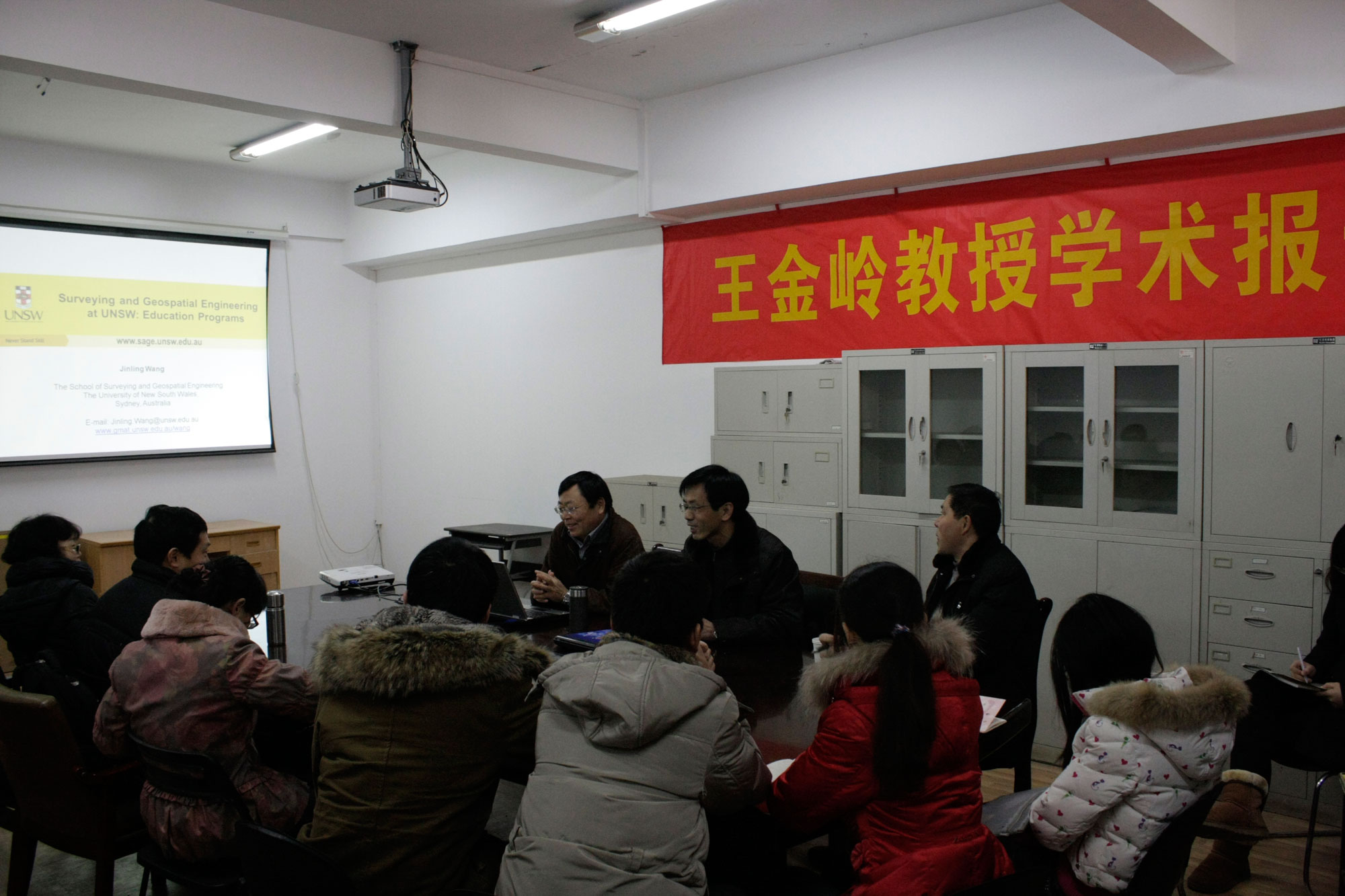 新年元月10日上午,在虹桥校区土木楼413会议室,澳大利亚新南威尔士大学王金岭教授应太阳成集团122ccvip邀请,为公司师生作了一个 “Surveying and Geospatial Engineering Education Programs at the University of New South Wales”的介绍,并做了题为“Some Research Directions in Geospatial Mapping and Navigation”的学术报告。报告会由经理李明峰教授主持,测绘工程系邵进达、刘三枝、苍桂华、束蝉方等教师及公司全体研究生参加了报告会。