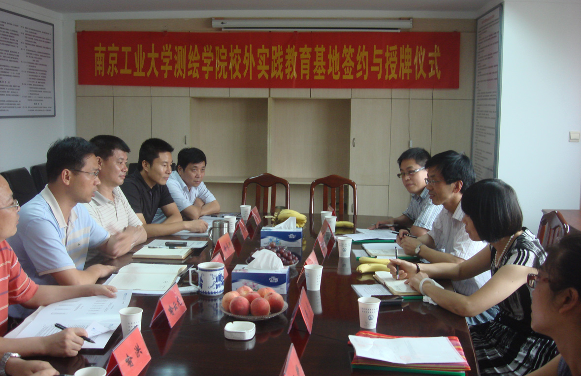 为进一步加强实践教育,探索应用型创新人才培养新模式,切实提高人才培养质量。7月中下旬,公司全体领导班子、两办人员分别赴南京、泰州、盐城等地,与南京市房屋安全鉴定处签定了校外实践教育基地协议、与泰州市测绘院和盐城勘察测绘院进行了校外实践教育基地授牌仪式,江苏省测绘局成果处陈洪良处长莅临指导并讲话。