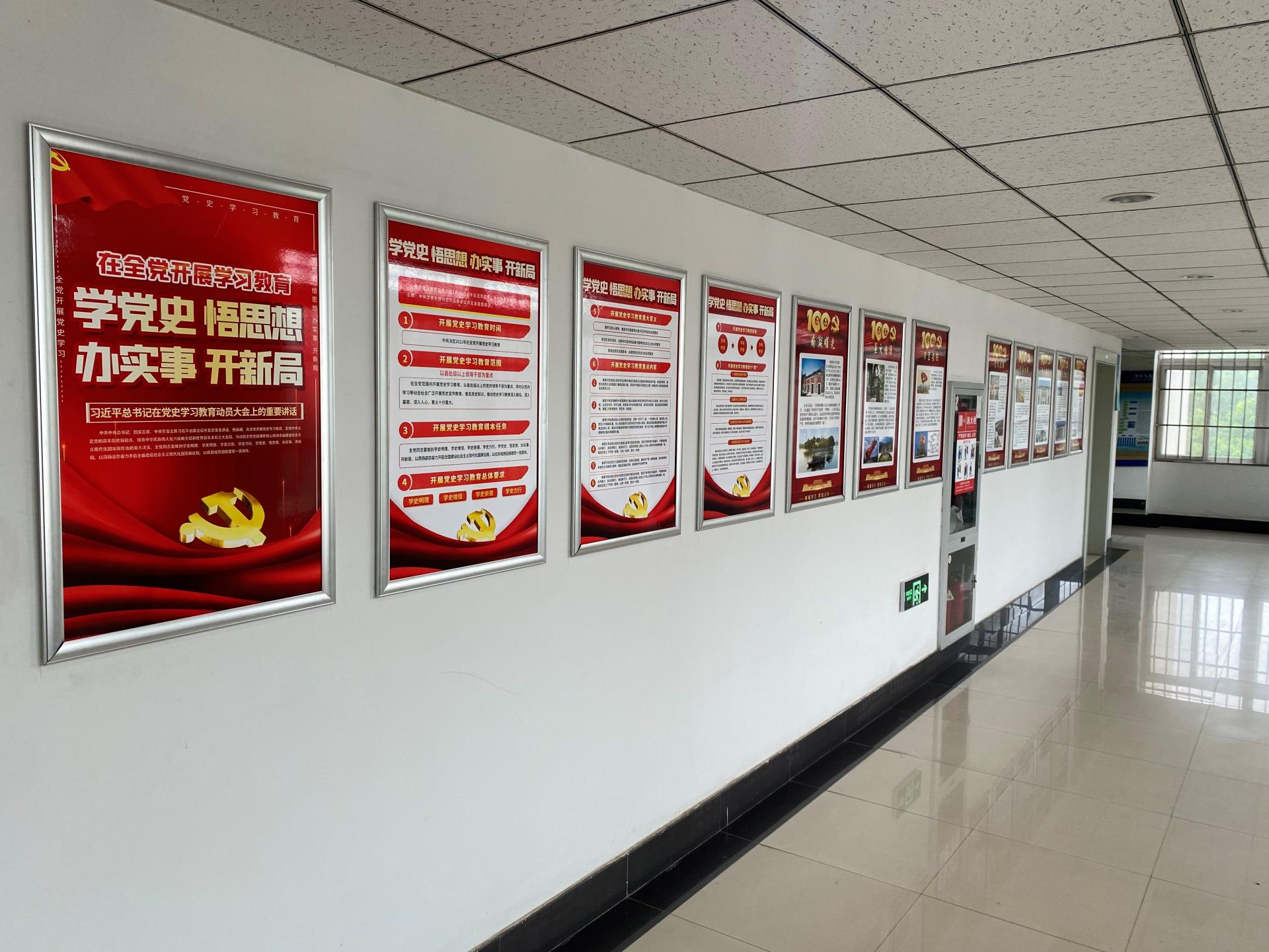 整个党史文化长廊浓缩了一代又一代中国共产党人用智慧和生命开天辟地、继往开来、艰苦创业的光辉历程,成为深入学习党史、继承革命传统、提高思想修养的重要场所,使公司党员师生抬眼可见,停足即学,不断激发出在重温党史中汲取砥砺前行的力量。