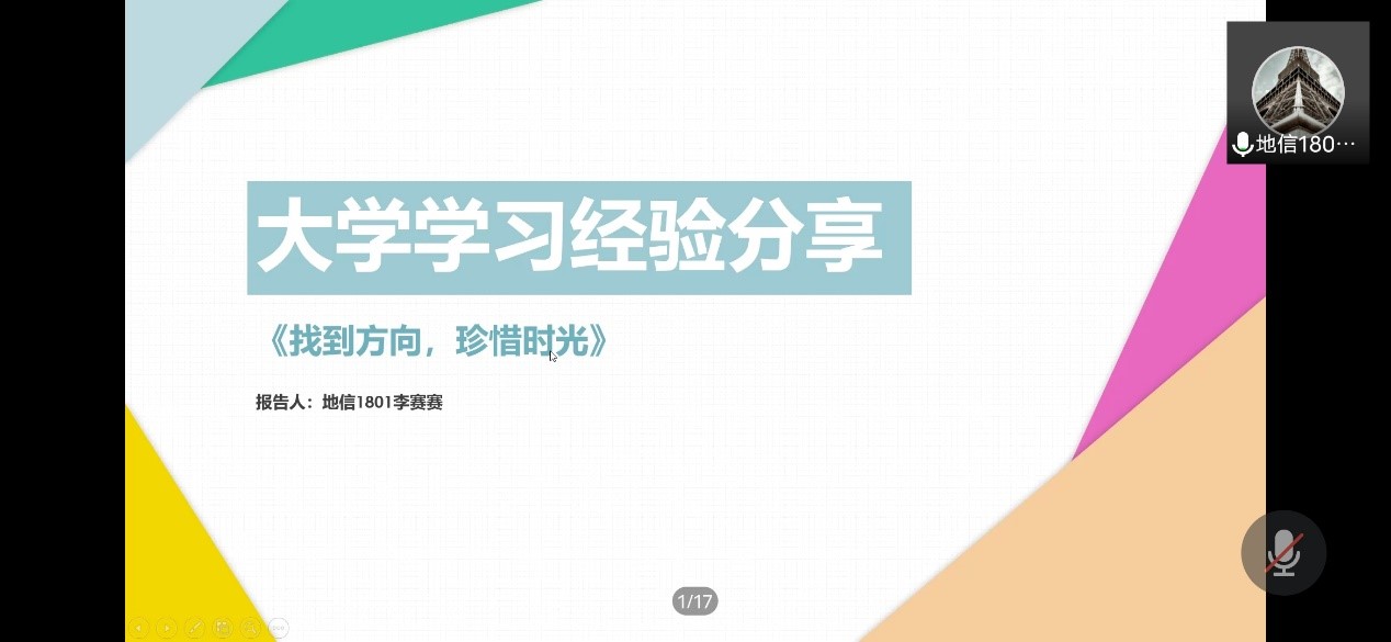 为帮助2021级新生更好、更快地适应老员工活,公司9月24日晚线上开展了优秀学长经验分享交流会。本次会议由遥感1901班储思敏主持,地信1801班李赛赛、遥感1901班聂聪和遥感2001班高伟晋三位同学主讲,全体2021级新生参加会议。