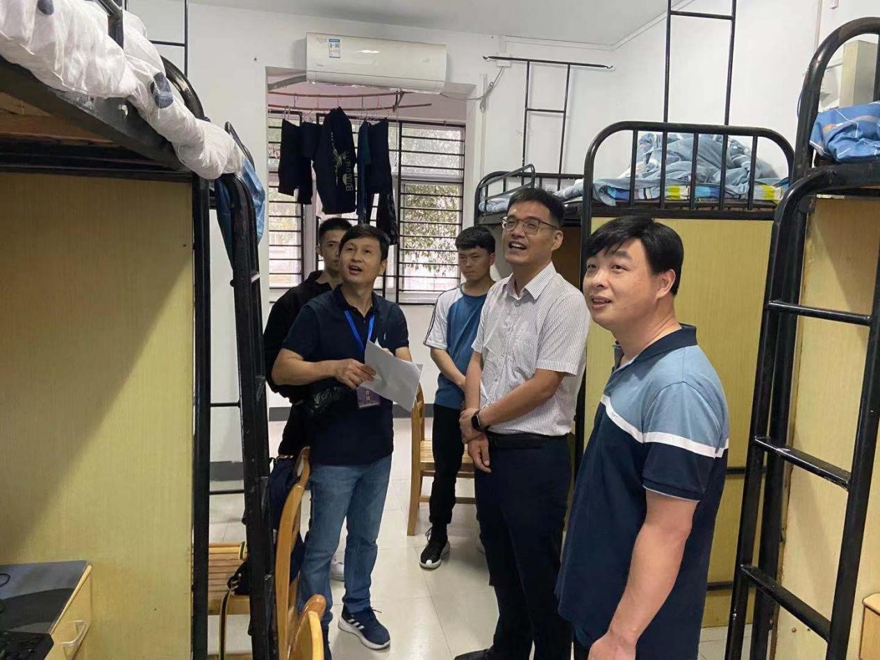 10月10日下午,公司党委书记俞建光、经理徐敬海、党委副书记荣华伟、学办主任张甲田和新生辅导员王帅,深入宿舍区看望慰问2021级全体新生,帮助他们尽快适应新的学习和生活环境。
