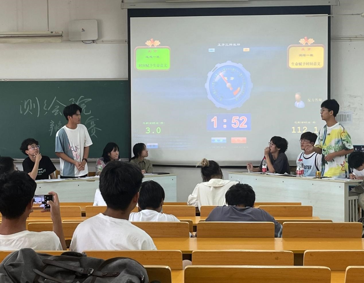 经过前几轮辩论赛的激烈角逐,每个新生班级的辩论队都各显风采,最终测绘2101班与遥感2101班辩论队脱颖而出,进入决赛。决赛论题为“时间和生命谁赋予对方意义”。双方辩友先自我介绍后,比赛开始,双方辩手互不相让,以出色的口才、有力的论证进行激烈的攻辩。比赛的第四环节自由辩论阶段,可以说是本场辩论赛的高潮。双方辩手引经据典,旁征博引,立足己方观点,针对对方漏洞进行反驳。赛后评委团成员严格打分,最终评定遥感2101班辩论队获胜,决赛“最佳辩手〞为正方三辩。随后,评委为辩论赛获胜队伍颁发奖品并合影留念,本次新生辩论赛圆满结束。