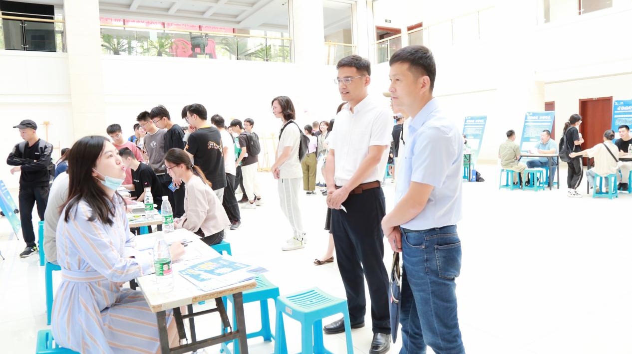宣讲会后,德清县11家用人单位于土木学科楼大厅举行专场招聘会。公司党委书记俞建光来到招聘现场,与企业负责人交流,希望通过培养更多优秀毕业生来加强校企合作,达到企业与毕业生共赢。