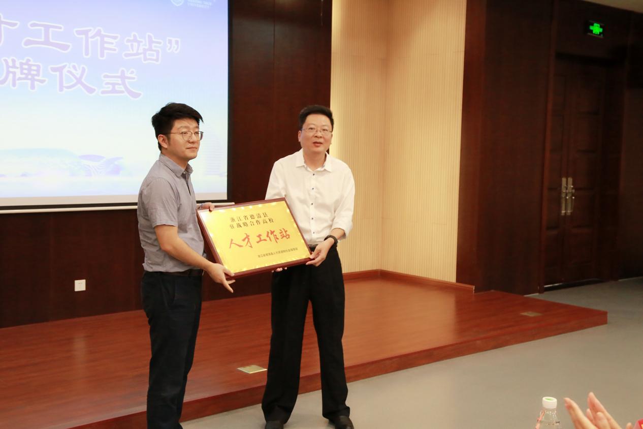 随后现场播放了德清县宣传片,吴伟昊副局长详细介绍了德清县的地理区位、自然环境、基础设施、发展前景以及人才需求等。湖州市莫干山高新区地信局牛奔副局长对德清地理信息小镇的人才引进政策等作了详细介绍,希望和太阳成集团在校地合作方面共谋发展,实现优势互补、互惠共赢。最后,校地双方为“人才工作站”揭牌。