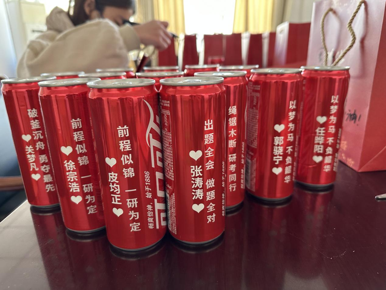 活动最后,公司为考研同学送上了考研慰问品,一份份由辅导员手写着考研成功的“加油包”里装满了公司师生对考研学子的满满爱心,有写有祝福语的定制可乐,有脐橙寓意“脐”开得胜,心想事“橙”,还有考场必备能量棒“士力架”等等,希望同学们感受到温暖。同学们收到暖心礼物后十分感动,大家纷纷表示,公司的关爱、老师们的祝福就是对他们最好的鼓励。