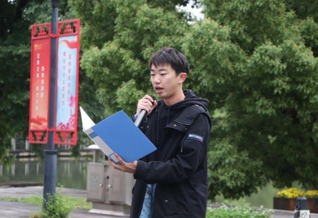 仪式伊始,主持人介绍了本次活动的主题和意义。接着,国旗护卫队成员普及了国旗法和国歌法的相关知识,提醒大家要尊重和爱护国旗、国徽、国歌,增强法治意识和公民责任感。接下来举行升旗仪式,全体师生肃立注目,高唱国歌,声音洪亮、铿锵有力。随后,员工代表张岳豪做了“筑梦中华,在我青年”的发言。最后,党委副书记荣华伟讲话,号召同学们要传承红色基因,坚定理想信念,勇于使命担当,用青春之力量奋进新时代,努力成长为堪当民族复兴重任的时代新人。