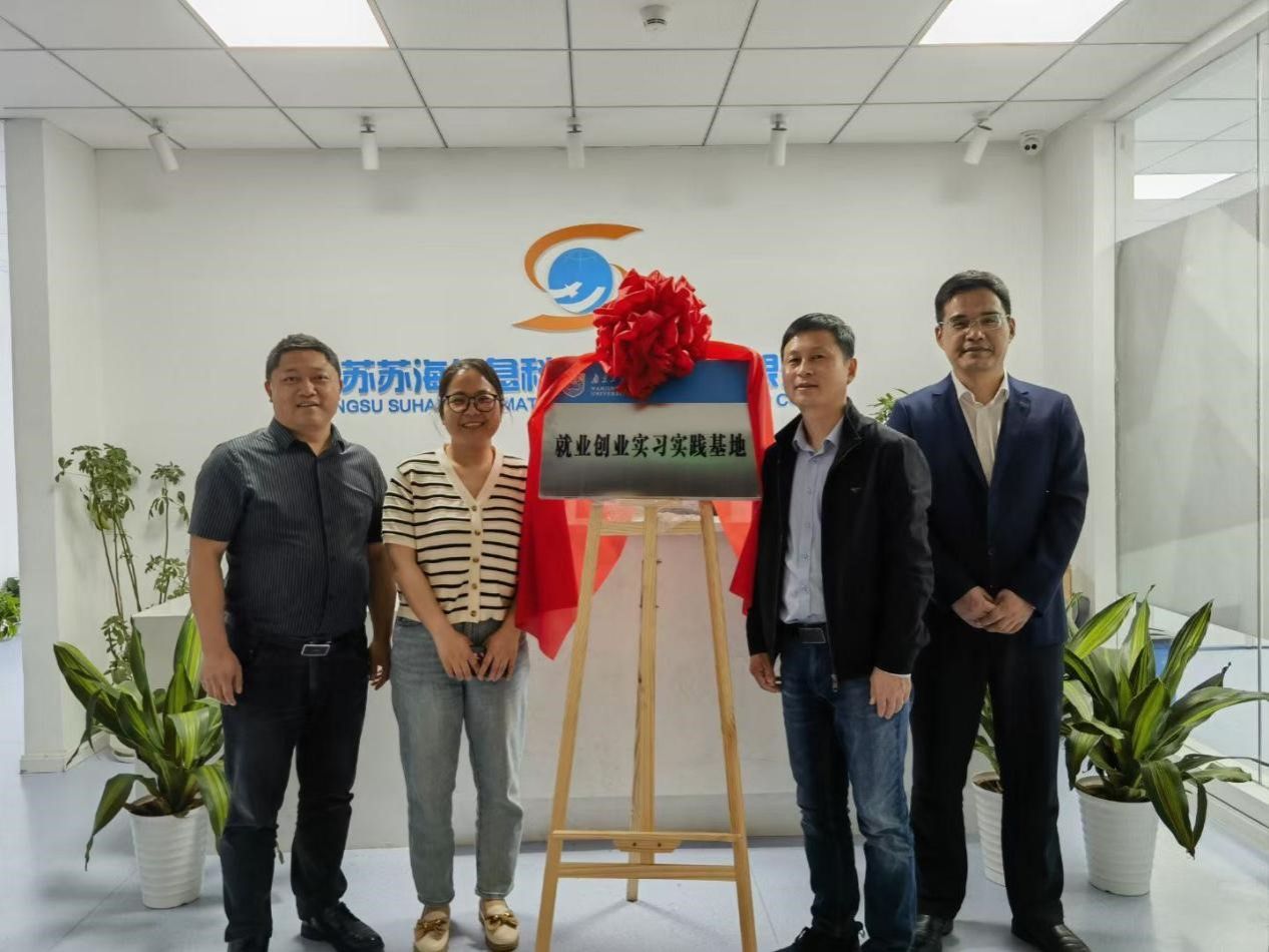 江苏苏海信息科技有限公司董事长丁玉平对公司一行表示热烈欢迎并陪同参观调研。参观结束后,双方就校企合作、人才培养、就业创业等相关事宜展开深入交流。丁玉平董事长介绍了企业的基本情况、发展历程和资质荣誉等,并表示愿意与公司建立良好且长久的校企合作关系。俞建光书记表示,要以本次调研为契机,发挥企业和公司各自特长,相互结合,为公司和企业培养更多优秀人才。座谈会后,双方签订了就业创业实习实践基地协议等,并为基地揭牌。