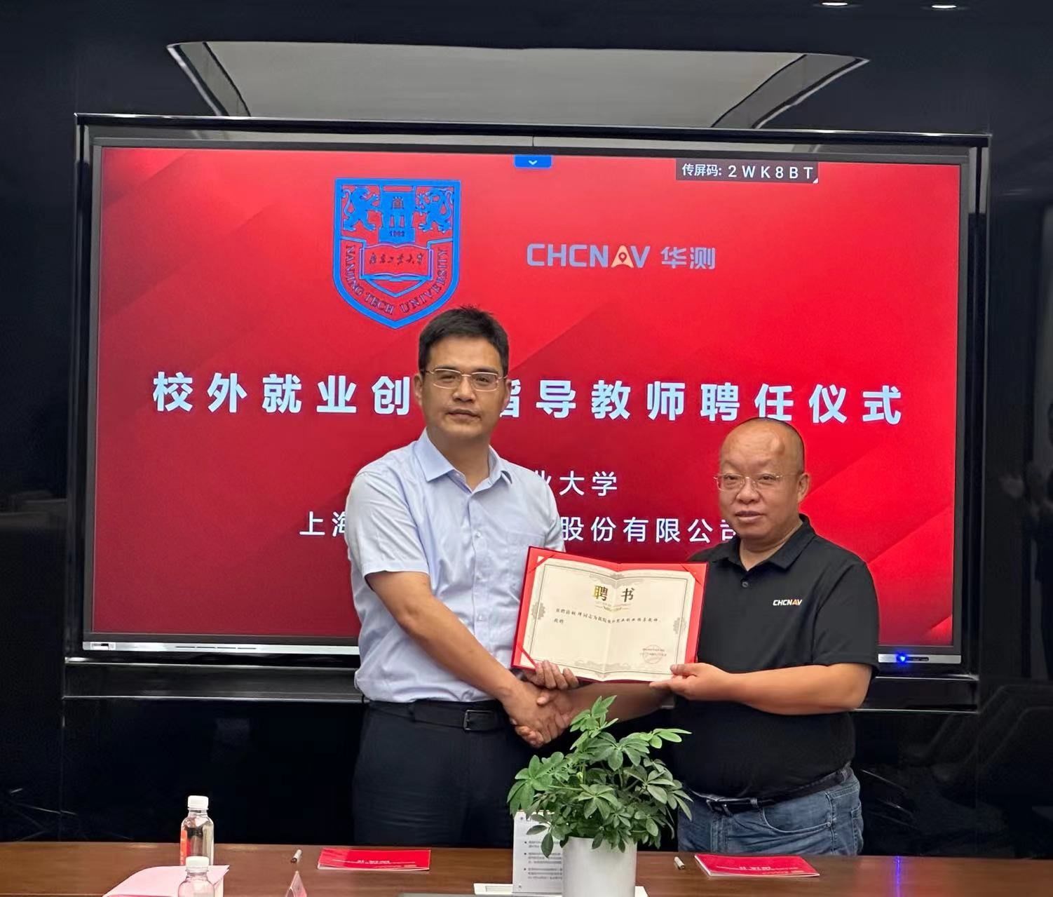 上海华测副总裁胡炜首先陪同参观了企业展厅,介绍了企业发展历程、核心技术、最新产品和资质荣誉等基本情况。高级副总裁、人力资源总监沈立伟对公司一行表示欢迎,介绍了公司情况和企业对人才的需求。俞建光书记介绍了公司基本情况,表示要以本次调研为契机,充分发挥企业和公司各自特长,深入开展校企合作,为公司和企业培养更多优秀人才。随后,双方围绕党建、团队建设、人才培养和校企合作等展开深入交流和研讨。座谈会后,双方签订了校企协同育人和就业创业实习基地合作协议,俞建光书记与沈立伟副总裁共同为实践教育基地和就业创业实习基地揭牌,并为胡炜副总裁颁发校外就业创业指导教师聘书。