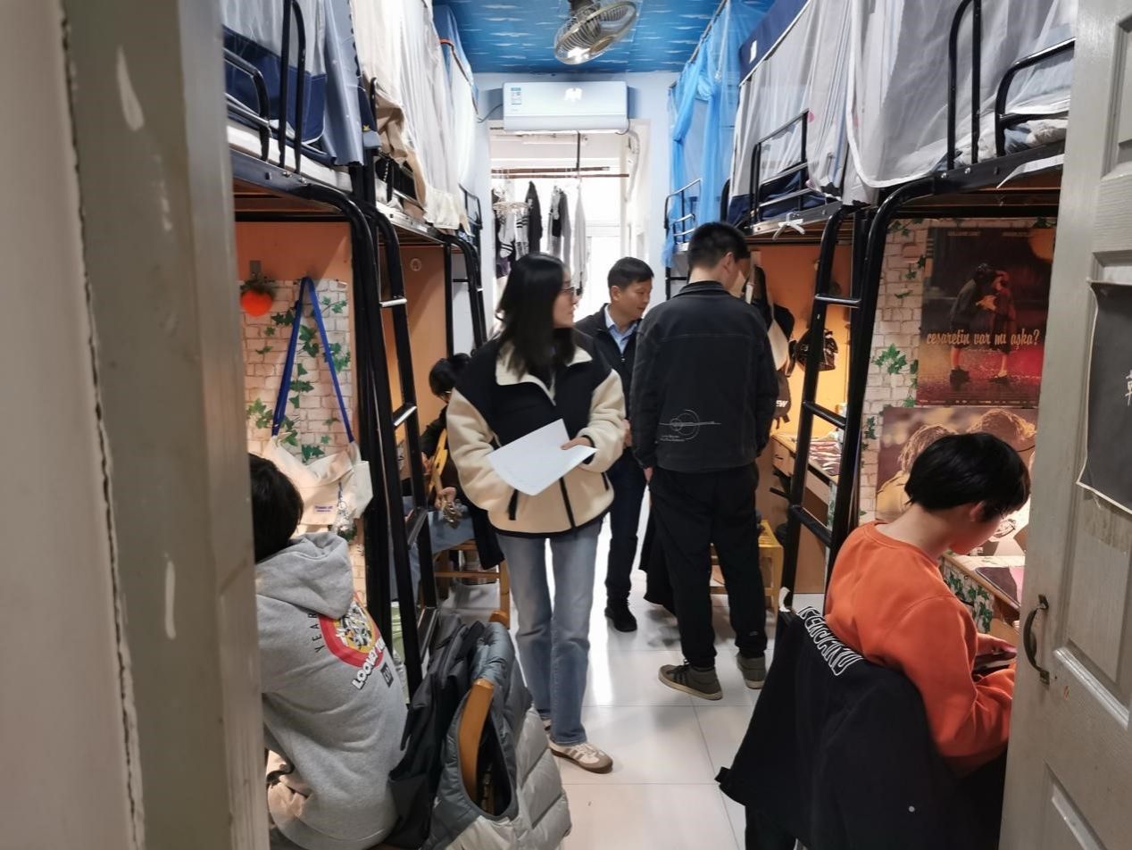 走访宿舍过程中,公司老师与同学们展开亲切交流。辅导员张甲田着重检查了员工的宿舍卫生并提出指导性意见。荣华伟副书记充分了解员工在校思想动态与生活、学习情况,引导同学们充分认识和谐温馨的宿舍环境和建立友好舍友关系的重要性,并提醒大家主动了解宿舍安全规范,自觉遵守校规校纪。此外,老师们还鼓励大家增强户外体育锻炼,调节身心状态,养成良好的卫生习惯,努力营造积极向上的生活氛围。