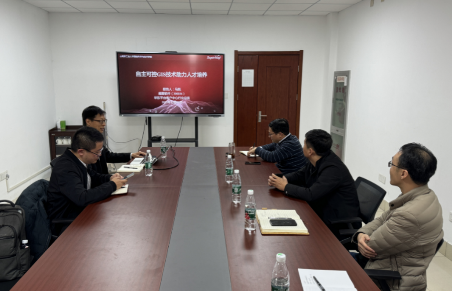徐敬海代表公司向公司对公司人才培养、毕业生就业等工作的支持表示感谢,并详细介绍了公司地理空间信息工程专业建设、毕业生深造与就业等情况。夏翔经理着重介绍了超图软件面向高校GIS的合作意向和规划,并详细介绍了联合办学、产教融合等方面的公司政策。