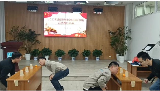 吃完热气腾腾的饺子后,茶话会进入游戏环节。游戏项目多样且有趣,有大风吹、撂杯子、原地踏步、吹球入洞、投掷乒乓球等。