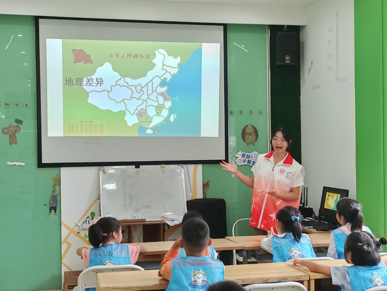 7月11日,公司地空2301班陶潇雨、测绘2301班肖瑾柔和遥感2302班赵雨彤三位同学,在吴云清老师的带领下,前往珍珠路社区开展以“上春山”为主题的暑期社会实践志愿活动。活动旨在带领社区儿童深入了解广西壮族自治区、贵州和江西三省的多彩民俗文化及秀美风光,通过亲身体验,使小朋友们感受到我国广阔地域间的地理差异,从而激发他们对地理学科的兴趣。