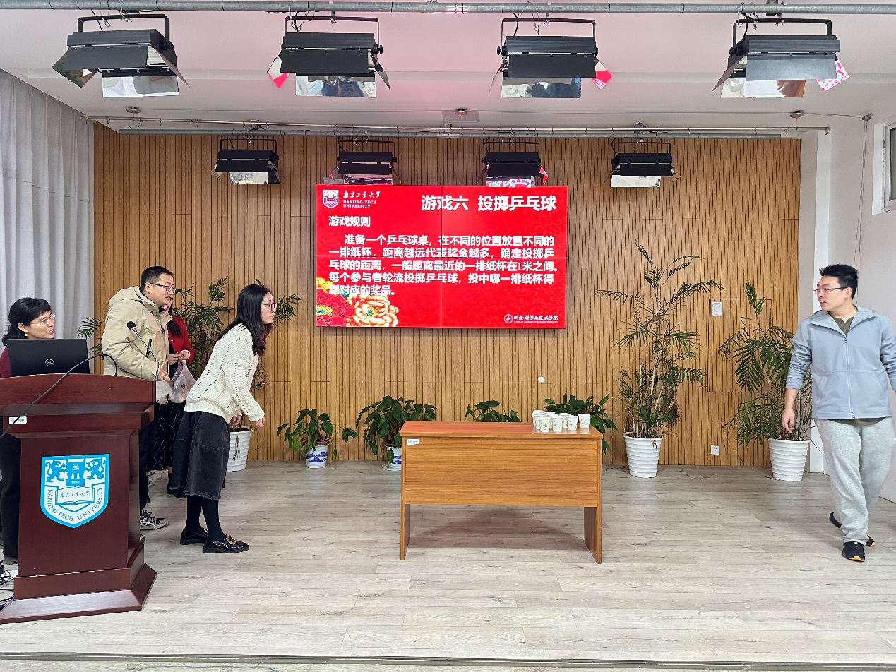 接下来进入迎春活动环节。教师员工热情高涨,进行了成语接龙、乒乓球接力赛等游戏活动和文艺表演。