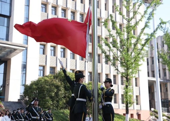 活动伊始,校国旗护卫队队员向师生普及了《国歌法》及《国旗法》相关知识。随后,举行了庄重肃穆的升旗仪式。升旗仪式后,员工代表遥感2401班徐柯同学作《担当时代大任 成就时代新人》主题演讲,号召广大青年立大志、明大德、成大才、担大任,努力成为堪当民族复兴重任的时代新人。党委副书记荣华伟以《笃行不怠强作为 厚积薄发谱新章》为题,从“胸怀家国情怀,担当时代重任”、“目标远大,勇于攻坚克难”、“勤于实践,锤炼过硬本领”三个方面向同学们寄予殷切期望,希望大家肩负起历史赋予的使命和责任,勇敢向前,用青春之力书写时代华章。
