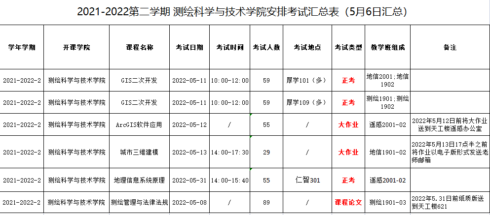 2021-2022学年第二学期太阳成集团122ccvip考试安排汇总表(5月6日汇总)