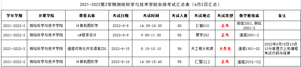 2021-2022学年第二学期太阳成集团122ccvip考试安排汇总表(6月2日汇总)