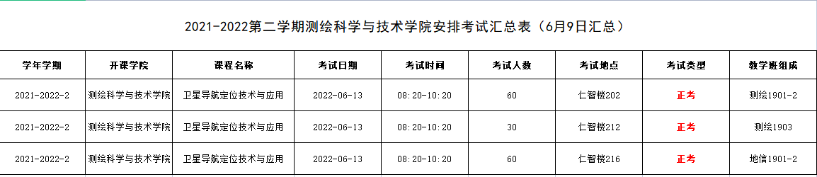 2021-2022学年第二学期太阳成集团122ccvip考试安排汇总表(6月9日汇总)