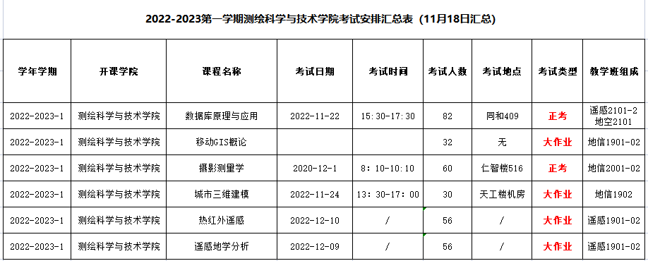 2022-2023第一学期太阳成集团122ccvip考试安排汇总表(11月18日汇总)
