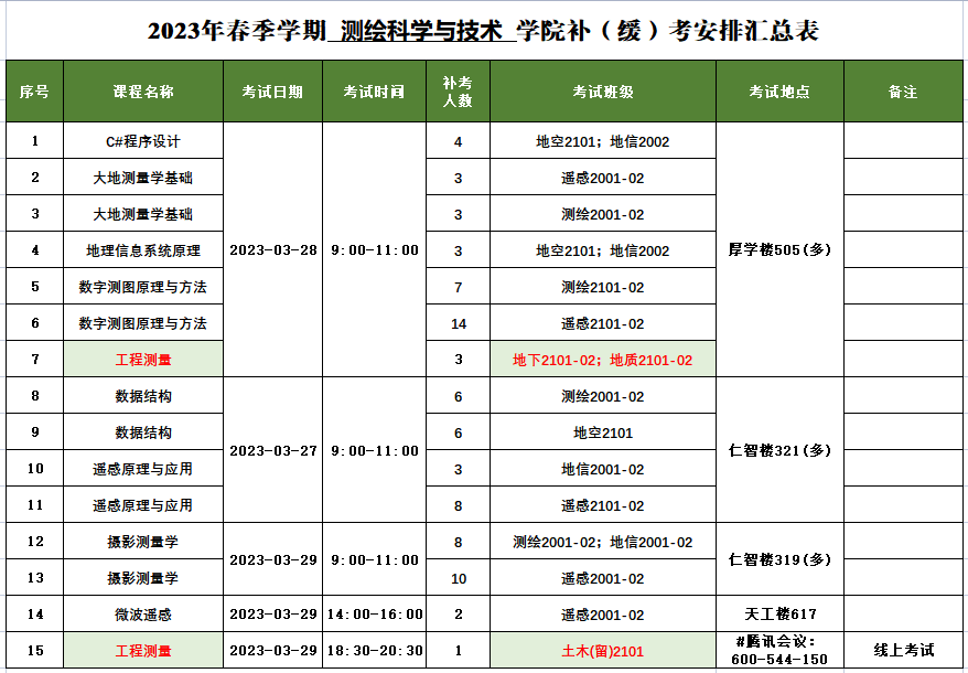 太阳成集团122ccvip2023年春季学期补(缓)考安排汇总表