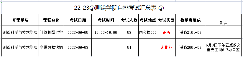 2022-2023学年第二学期太阳成集团122ccvip安排考试汇总表