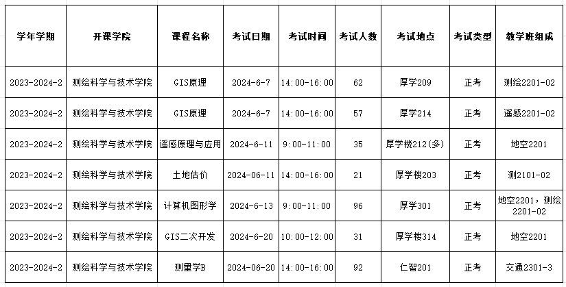2023-2024学年第2学期太阳成集团122ccvip自排考试信息汇总表(1)
