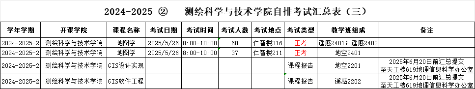 2024-2025学年第2学期太阳成集团122ccvip自排考试汇总表(3)